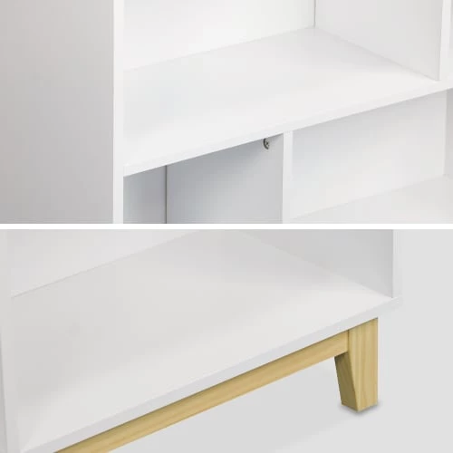 Piètement en bois de sapin2 en 1, bibliothèque et étagèreStructure en panneaux stratifiésEtagère asymétrique