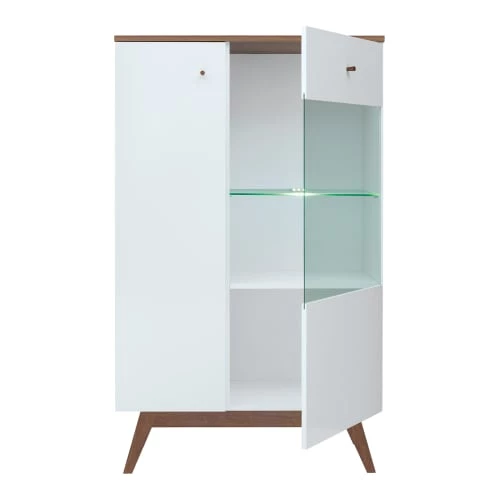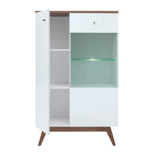 Vaisselier 2 portes Ivan Blanc et Bois Fabrication Européenne – Collection : Ivan – Couleur : Bois façon mélèze et blanc laqué – Matériaux : Panneaux agglomérés stratifiés (résistant aux rayures) – Pieds en bois de pin – Caractéristiques : 2 portes dont 1 vitrée – Portes équipées du système de fermeture silencieuse – LED – Non inclus – Poids et dimensions : 42 kg – 85 x 40,5 x 140,5 cm – Produit livré, à monter – Produit garanti 12 Mois.