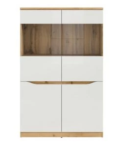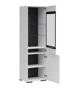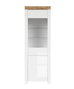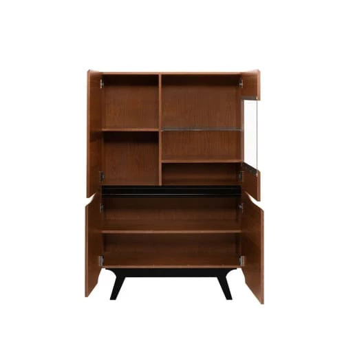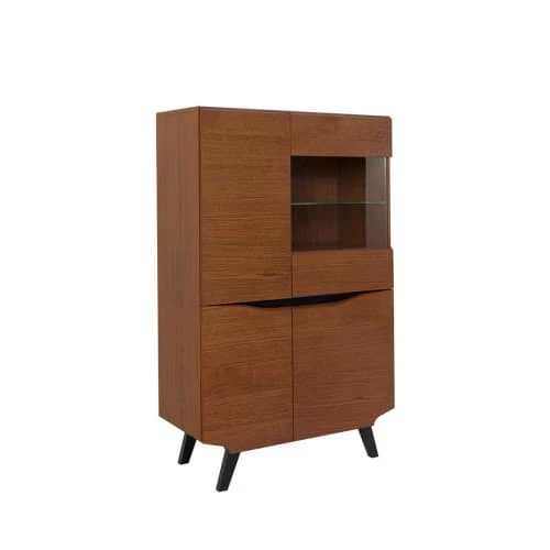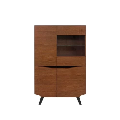 Vaisselier bas 4 portes Kennet Bois foncé Fabrication Européenne – Collection : Kennet – Matériaux: Panneaux agglomérés et placage en bois – Pied en bois – Vitrine et étagères en verre trempé – Couleur: Bois façon chêne foncé – Caractéristiques: 4 portes – 6 étagères dont 1 en verre – LED – Inclus – LED à brancher sur prise secteur avec un bouton allumer / éteindre – Portes équipés du système de fermeture silencieuse – Poids et dimensions : 57 kg – 95 x 42 x 150 cm – Produit livré, à monter – Produit garanti 12 Mois.