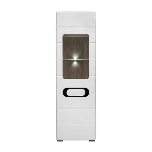 Brw Vitrines Vitrine 1 Porte Avec Led Blanc Et Noir Laqué