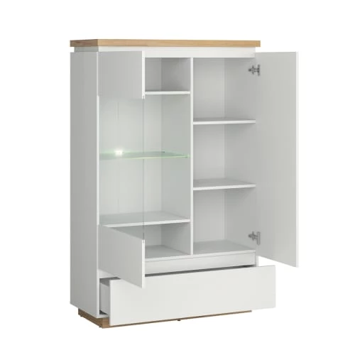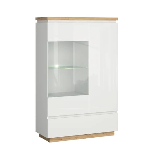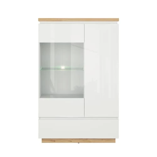 Brw Vitrines Vitrine 2 Portes 1 Tiroir Blanche Laqué