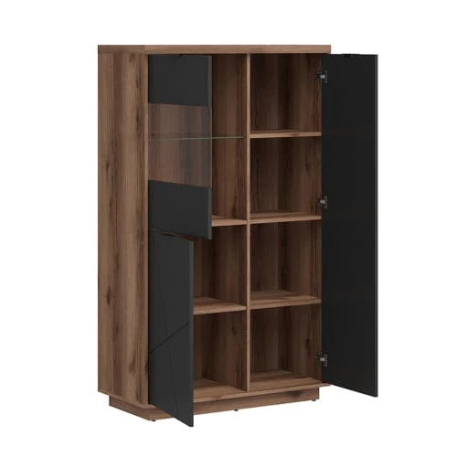 Brw Vitrines Vitrine 3 Portes Noire Et Naturelle