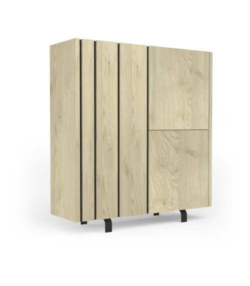 Calicosy Vaisseliers Buffet Haut 3 Portes – Effet Chêne Et Intérieur Noir