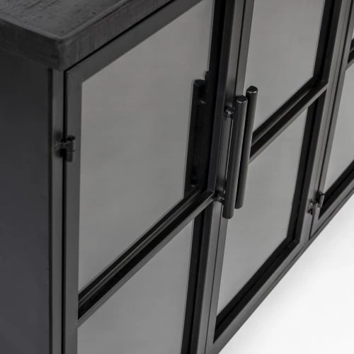 matière : – Matière: Verre trempé, Médium (MDF), Fer, Bois massif – Piètement: Métal