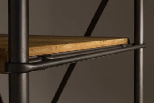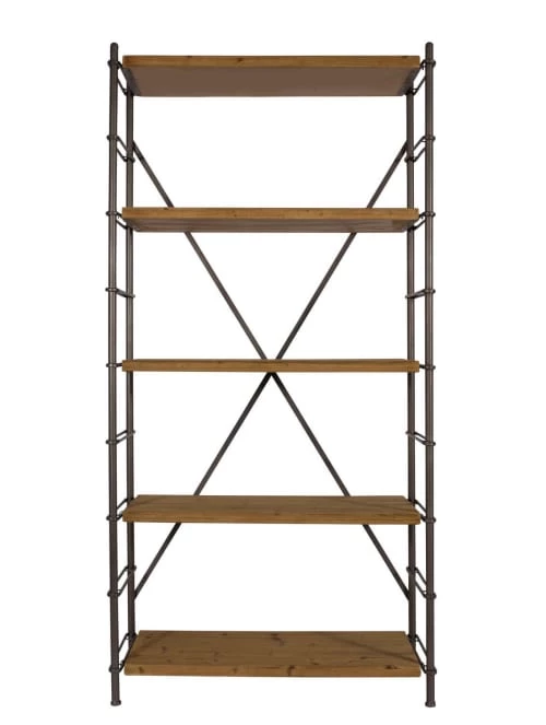 Etagère de rangement ou bibliothèque industrielle de la marque Dutchbone. Sa structure est en acier et les étagères sont en bois (Sapin) Charge maximale: 25 kg par étagère. Vous pouvez créer une grande bibliothèque de 3 mètres en reliant 2 bibliothèques Iron à l’aide d’une des étagères (voir photo)