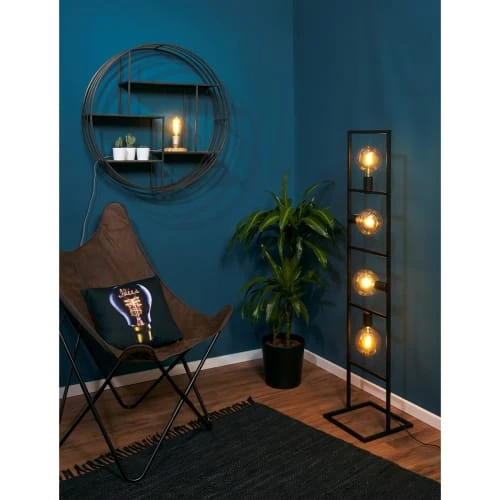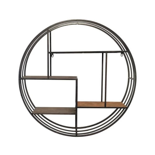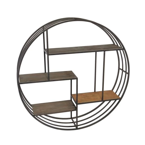 EMDE Étagères Etagère Ronde Mix Bois Métal Noir