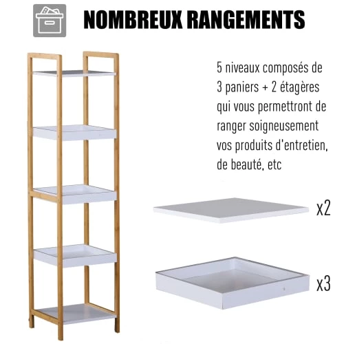 – 5 niveaux composés de 3 paniers + 2 étagères vous offrant de nombreux espaces de rangement