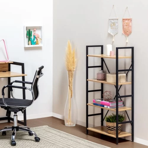 · Parmi les caractéristiques de cette étagère, nous soulignons la couleur du bois et la couleur noire, une combinaison idéale pour compléter une décoration industrielle. Ce style s’adaptera parfaitement à différents types d’espaces: pour la chambre, pour le salon ou encore pour un bureau.