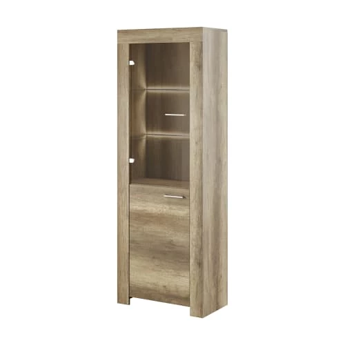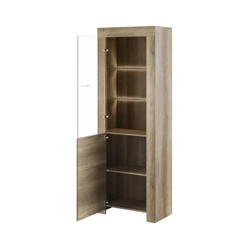 Vitrine 1 porte Lucie Bois clair Fabrication Européenne – Collection : Lucie – Matériaux : Panneaux agglomérés – Couleur : Bois façon chêne – Caractéristiques : 2 portes dont 1 vitrée – 4 étagères dont 2 en verre trempé – LED Non inclus – Poids et dimensions : 47 kg – 70 x 37 x 197 cm – Produit livré, à monter, notice incluse – Produit garanti 24 mois