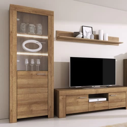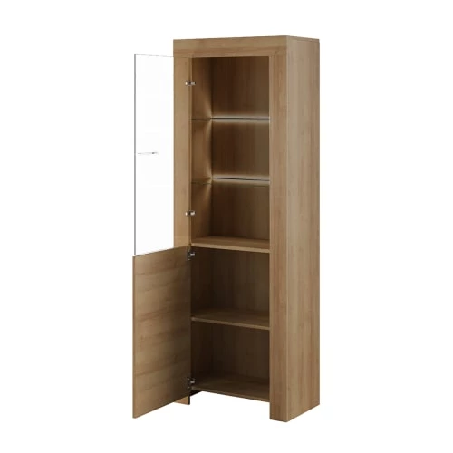 Vitrine 1 porte Lucie Bois Fabrication Européenne – Collection : Lucie – Matériaux : Panneaux agglomérés – Couleur : Bois façon chêne riviera – Caractéristiques : 2 portes dont 1 vitrée – 4 étagères dont 2 en verre trempé – LED Non inclus – Poids et dimensions : 47 kg – 70 x 37 x 197 cm – Produit livré, à monter, notice incluse – Produit garanti 24 mois