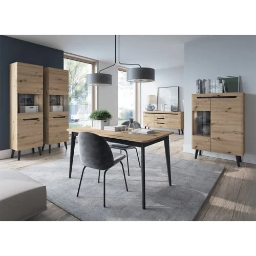 Vitrine 2 portes Lana Bois et Noir Fabrication Européenne – Collection : Lana – Couleur : Bois façon chêne – Noir mat – Matériaux : Panneaux agglomérés – Vitrine et étagère en verre trempé – Caractéristiques : Ouverture à gauche- 2 portes dont 1 vitrée – 5 étagères dont 1 en verre trempé – Poids et dimensions : 44 kg – 53 x 40 x 197 cm – Produit livré, à monter, notice incluse – Produit garanti 24 mois