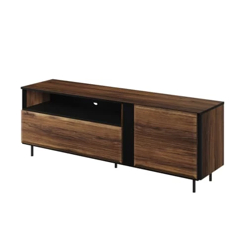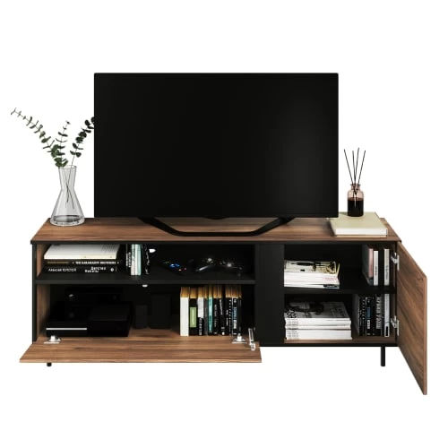 Lnt Vaisseliers Meuble Tv 2 Portes 1 Niche 155 Cm Naturel Et Noir