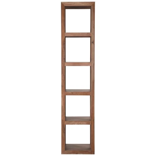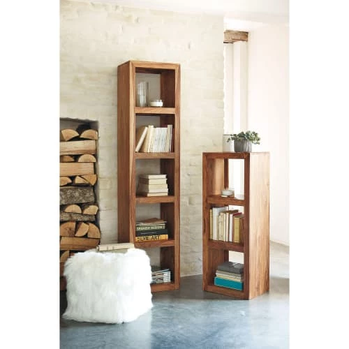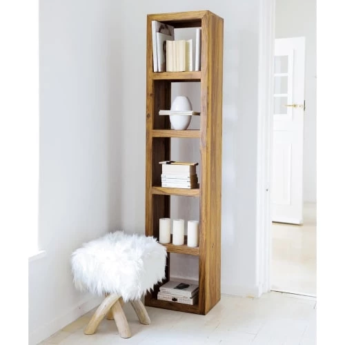 Cette étagère en bois de sheesham massif est dotée de 4 étagères fixes.