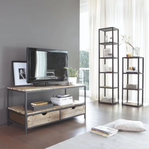 Pour disposer vos livres ou vos objets de collection, optez pour la colonne indus en sapin massif blanchi et métal LONG ISLAND. Cette étagère en métal noir vous offre 4 plateaux en bois. Fidèle au design industriel, cette étagère de rangement moderne marie le bois au métal dans un esprit indus chic. Pour encore plus de rangements, complétez avec la colonne de rangement indus petit modèle.