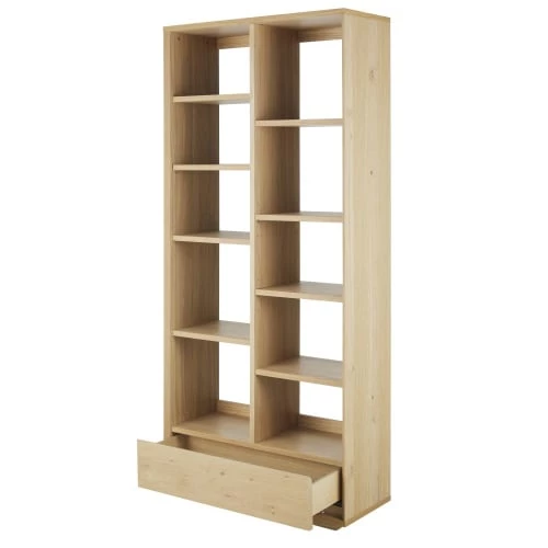 Structure du tiroir, panneau de fond et des côtés : panneau de particules et mélaminé effet chêne