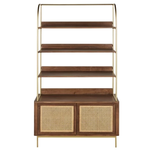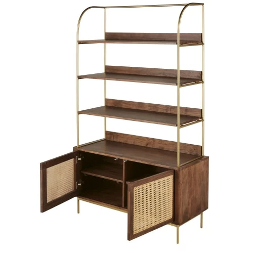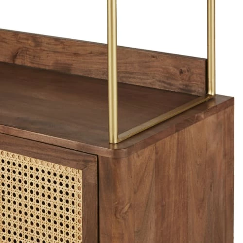 Portes : contours en acacia massif finition teintée noisette et vernis nitrocellulosique, intérieur en cannage rotin