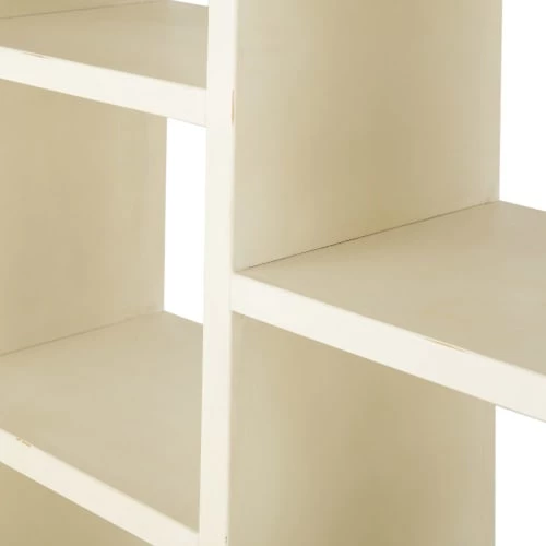 Panneaux de côtés : panneaux de fibres de moyenne densité, peinture acrylique coloris blanc cassé, finition effet coup de pinceau et légèrement abîmée sur les arêtes