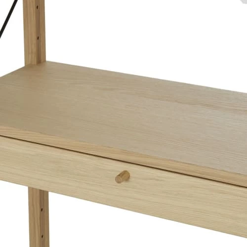 Etagères (3 amovibles et ajustable), côtés, arrière et face avant du tiroir: panneaux de particules et placage chêne, finition claire