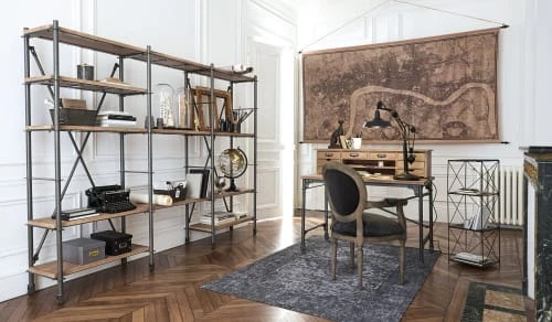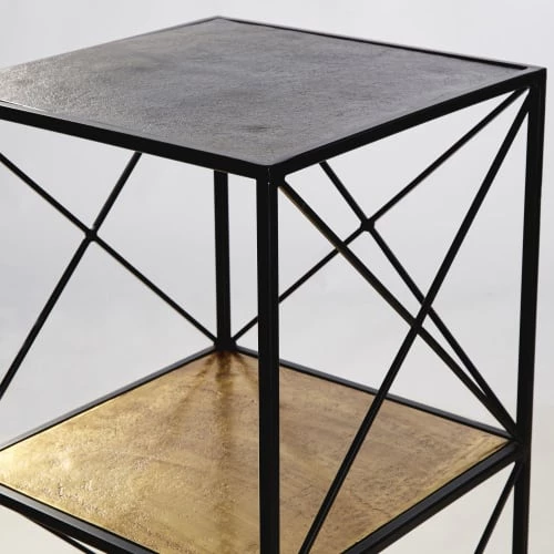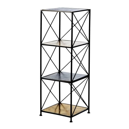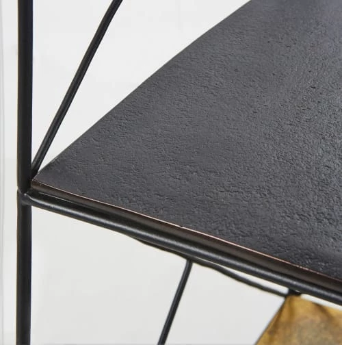 L’étagère en métal gris mat et doré effet vieilli BROOKLYN saura vous séduire par son look industriel chic ! Son aspect brut métallique vous permettra de créer une ambiance factory dans votre intérieur. N’hésitez pas à allier cette étagère à un canapé chesterfield et du mobilier chiné pour parfaire votre déco urbaine. A vous de jouer !