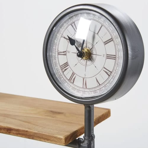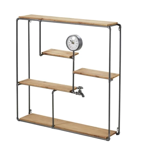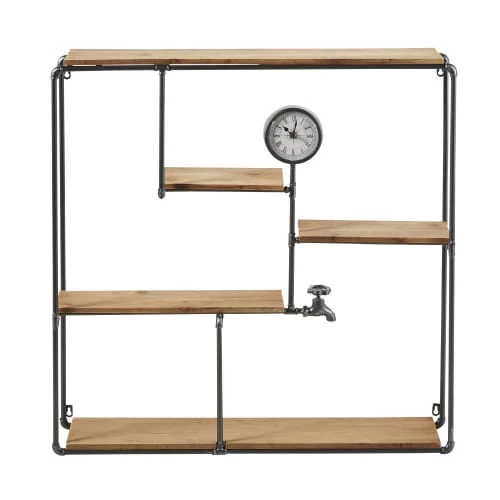 Maisons Du Monde Étagères Etagère En Métal Noir Et Sapin Avec Horloge