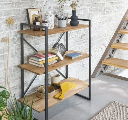 Légère et graphique, on adore l’étagère industrielle en sapin massif et métal noir STATEN ! Le design factory affirmé de cette étagère trouvera rapidement sa place dans un intérieur de ce style ou réhaussera l’ambiance d’un style plus classique. Aussi belle que pratique pour toute votre maison, disposez-y vos plus beaux objets déco pour attirer les regards de tous vos invités !