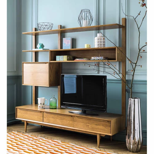 En plus de vous offrir un espace dédié pour votre écran, ce meuble TV étagère vintage en chêne massif PORTOBELLO vous propose également de multiples rangements pour vos collections de livres, CD ou DVD. Réalisé en chêne massif français, ce meuble TV étagèreapportera une note chaleureuse à votre pièce. Le petit plus ? Son design original qui conviendra aussi bien à une déco moderne que vintage. Prêt à succomber à son charme ?