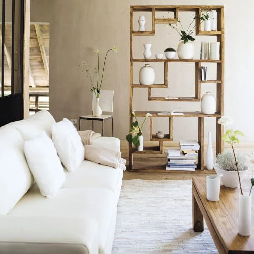 Inspirée de l’art de vivre nordique, l’étagère déstructurée en sheesham massif STOCKHOLM crée une ambiance zen et accueillante dans votre intérieur. Ce meuble au bois clair se transforme en un écrin cubique pour vos livres ou vos bibelots, petits et gros. Ce meuble de rangement unique crée une impression de légèreté dans votre espace de vie. Un meuble bibliothèque qui marie des formes épurées à la chaleur du bois blond de sheesham.