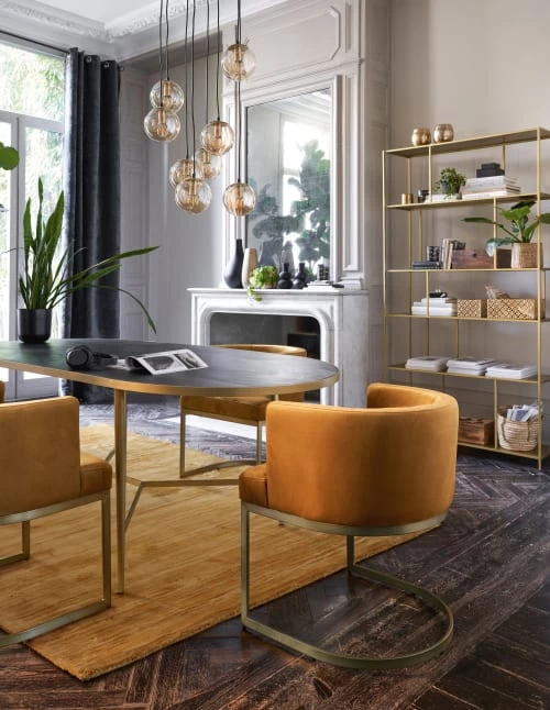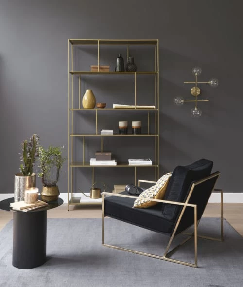 Avec son allure chic et minimaliste, l’étagère en métal doré SIMPLY nous prouve que la tendance gold n’a rien de bling bling ! Son coloris laiton, authentique et raffiné, écarte tout risque de faute de goût. Livres, vases, bougies, statuettes… Tous vos objets précieux seront instantanément mis en lumière grâce à cette étagère contemporaine. Notre conseil pour une déco tendance ? On la mixe avec d’autres matières brutes telles que le marbre ou le béton.