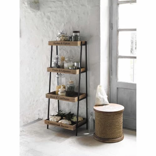 Composée de 4 bacs, cette étagère PRIMEURS qui mêle bois et métal sera idéale pour faire du rangement dans votre cuisine.