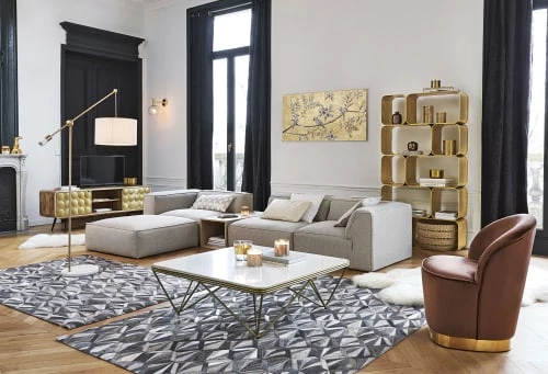 Optez pour un style vintage clinquant pour votre mobilier grâce à la gamme GATSBY ! Avec leurs lignes résolument rétro, les meubles de cette gamme s’affirmeront au cœur de votre intérieur et donneront le ton à votre déco. Meuble TV, étagère ou buffet, la gamme GATSBY se pare de doré pour toujours plus d’élégance. Pour lutter contre la déforestation, le bois de se meuble est tracé, de la forêt au lieu de vente. Oserez-vous introduire ces meubles audacieux dans votre pièce de vie ?