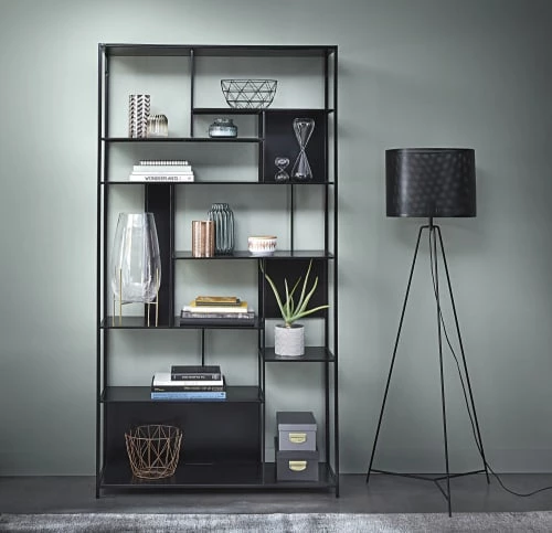 Mettez de la modernité dans votre intérieur avec l’étagère en métal noir SIMPLY ! Vous aimerez son design géométrique qui offre de multiples possibilités de rangement. Idéale pour exposer vos objets fétiches ou vos livres, cette étagère en métal pourra également servir de cloison pour délimiter votre espace. Sortez des codes du classique et optez pour l’originalité de cette étagère !