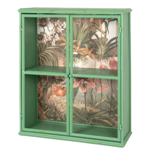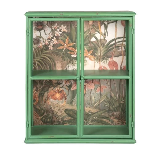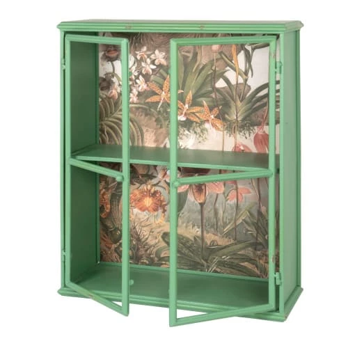 Joli clin d’œil aux cabinets de curiosités, l’étagère imprimé végétal CAMILA mettra en avant vos petits objets déco. Bougies, boîtes et petits cactus pourront être accueillis sur les deux niveaux. Composée d’une structure en métal vert vieilli, cette étagère est sublimée par deux portes en verre. Son fond à l’imprimé feuillage apportera beaucoup d’originalité. Une chose est sûre : elle ne manquera pas d’atouts. On craque, et vous ?