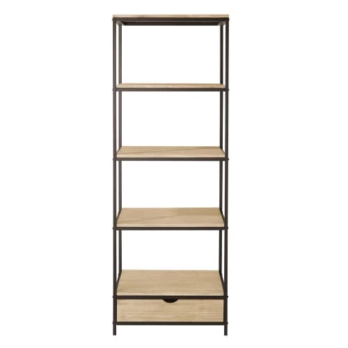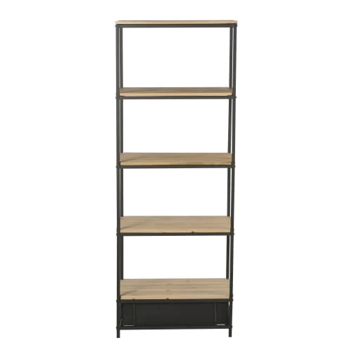 Besoin d’un meuble de rangement au look sobre et tendance ? Choisissez l’étagère indus 1 tiroir en sapin massif et métal LONG ISLAND. Cette étagère en bois et métal vous offre 5 plateaux fixes et un tiroir dans le bas. Idéal pour meubler un studio, ce meuble bibliothèque se glisse partout. Ce meuble moderne existe aussi en 130cm de largeur avec deux tiroirs dans le bas.