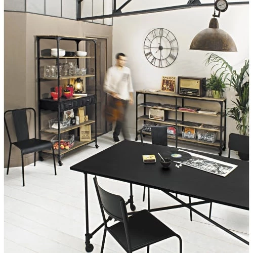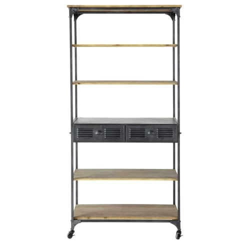 A la recherche d’un meuble de rangement au style loft urbain ? L’étagère à roulettes 2 tiroirs en sapin et métal gris BROOKLYN va apporter du cachet à votre intérieur en plus de son côté pratique ! Inspirée des meubles d’atelier, elle dispose de roulettes pour être facilement déplacée. Dans le salon ou dans la cuisine, cette étagère de rangement est dotée de multiples rangements pour y poser des objets décoratifs ou de la vaisselle ! Avec son esprit factory alliant métal et sapin, vous compléterez votre déco indus avec un meuble de caractère !