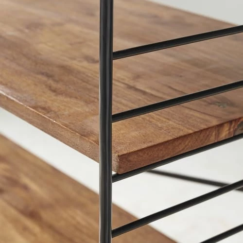 Esthétique et fonctionnelle, l’étagère double 6 portes en métal noir et acacia massif YUCCA résoudra vos problèmes de rangement ! On la choisit pour son design résolument rétro souligné par une structure délicate en métal noir, clin d’œil aux grands designers des années 50. Votre intérieur manque de chaleur ? Vous pourrez compter sur ses portes coulissantes et étagères en acacia teinté pour réchauffer instantanément l’atmosphère. Combinez cette étagère vintage avec le meuble d’entrée de la même gamme !