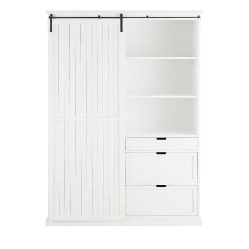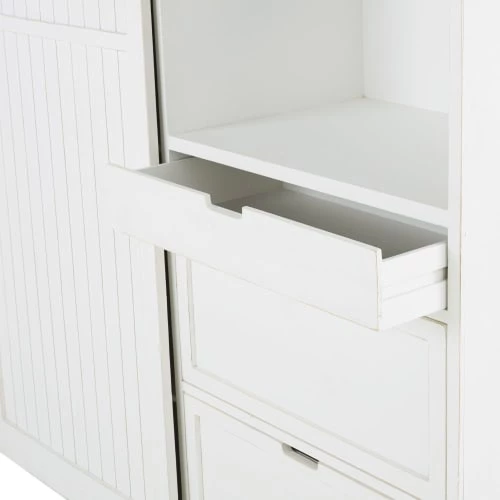 Panneaux de côté, de dessus, dessous, de fond, étagères, façades et structure des tiroirs et de la porte : panneaux de fibres de moyenne densité
