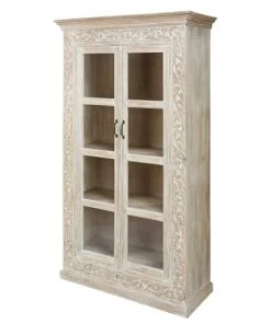 Le vaisselier 4 portes 2 tiroirs en manguier massif blanc VERSAILLES baigne dans un style classique intemporel, et on ne peut qu’approuver ! Ce meuble de rangement conçu tout en manguier massif blanc s’est paré d’un bel effet patiné et d’une finition légèrement vieillie, et le résultat est bel et bien là ! Il trônera fièrement dans votre pièce de vie, et exposera vos plus beaux objets grâce aux 4 étagères amovibles en manguier massif qui se trouvent derrière les 2 portes en verre. Plus bas, vous découvrirez 2 tiroirs qui accueilleront les couverts et petits objets. Quant à la partie basse du vaisselier, elle s’accompagne d’une étagère amovible placée derrière 2 portes.