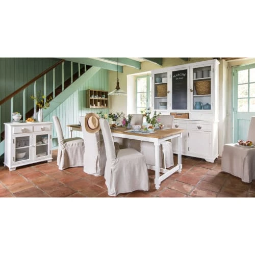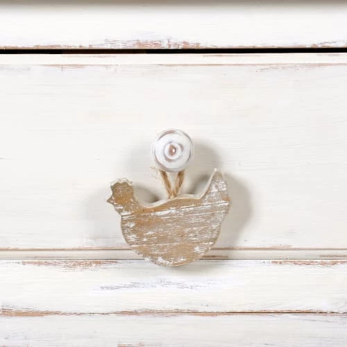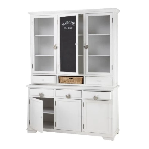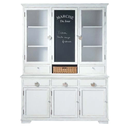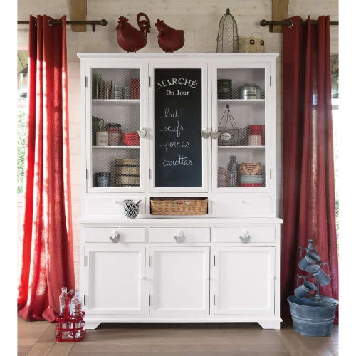 Ressentez l’air de la campagne avec le vaisselier blanc BASSE COUR ! Ce beau meubleau style champêtre saura apporter à votre intérieur une touche d’authenticité. Avec ses nombreux rangements, vous ne manquerez pas de place pour exposer votre vaisselle et ranger tous vos ustensiles de cuisine ! Le plus déco ? Ses poignées joliment décorées de poules en paulownia et son astucieuse porte ardoise pour noter menu ou liste de courses ! Un vrai coup de cœur !
