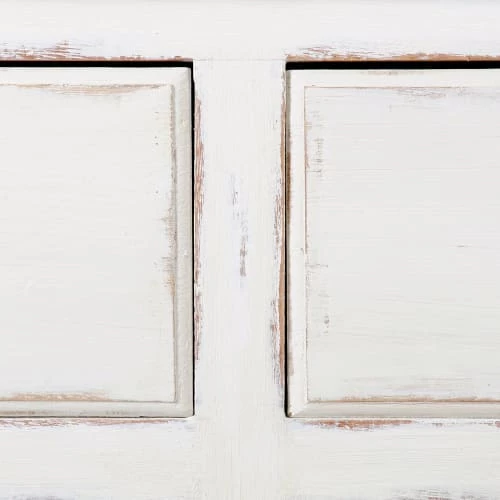 Finition : peinture acrylique blanche mate patinée et légèrement vieillie
