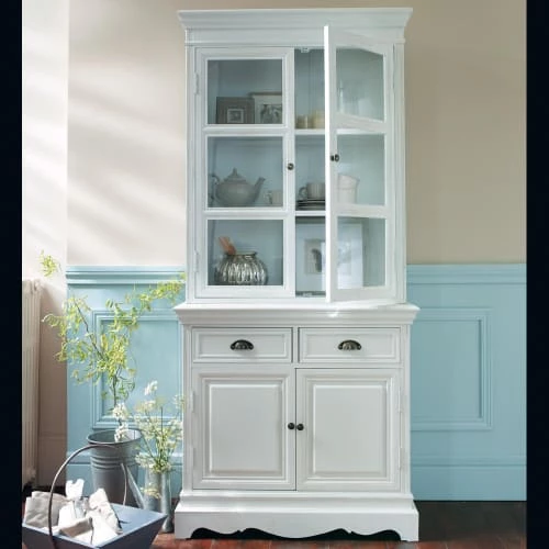 Adoptez ce vaisselier bois blanc JOSEPHINE pour entreposer toute votre vaisselle. Dans un style classique intemporel, cette armoire en bois sera parfaite dans votre séjour / salle à manger. Avec ses 2 portes vitrées, ses 2 portes bois et ses 2 tiroirs, ce buffet bahut blanc est un meuble de rangement rêvé.