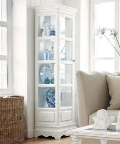 La silhouette noble de ce vaisselier vitré en pin recyclé blanc FLAUBERT laisse deviner un style classique et chic.
