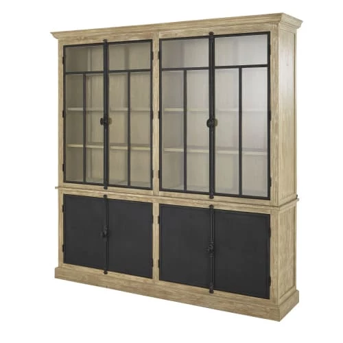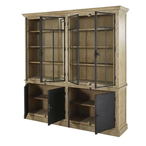 Idéale pour exposer vos objets fétiches, vos livres ou pour mettre en valeur votre argenterie, la double vitrine 4 portes grise et noire VOLTAIRE sublimera à merveille le style classique. Fonctionnel et raffiné, ce meuble offre un vaste espace de rangement, avec une partie visible qui exposera fièrement vos bibelots, et une seconde partie qui pourra accueillir votre linge de maison bien à l’abri de la poussière. Cette double vitrine fera sensation dans une salle à manger ou une cuisine.