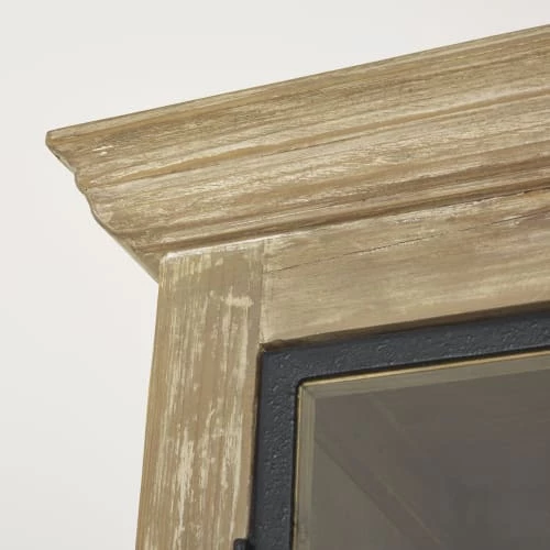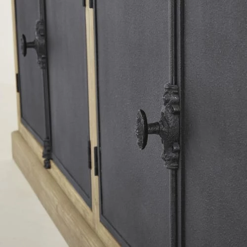 Portes : métal finition peinture nitrocellulosique coloris noir vieilli et légèrement patinée cuivrée, verre trempé (5mm)