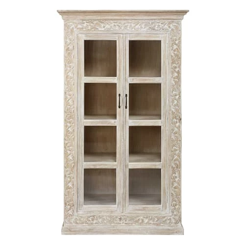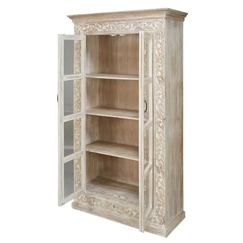 D’inspiration exotique, cette sublime vitrine sculptée en manguier PUSHKAR vous fera voyager dans votre propre salon.