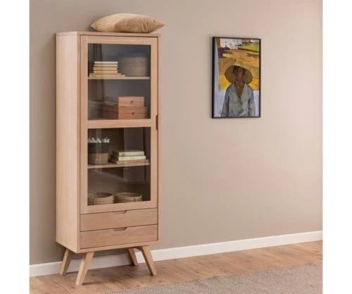 matière : Matériaux : Bois (chêne) + verre Pieds : Bois (chêne) Type de bois : Chêne Nombre de tiroirs : 2 Nombre de portes : 1 Nombre d’étagères : xxx