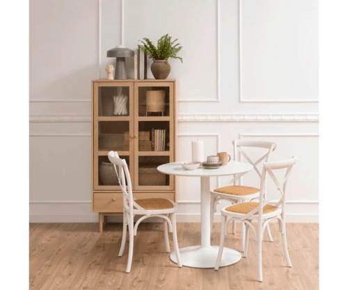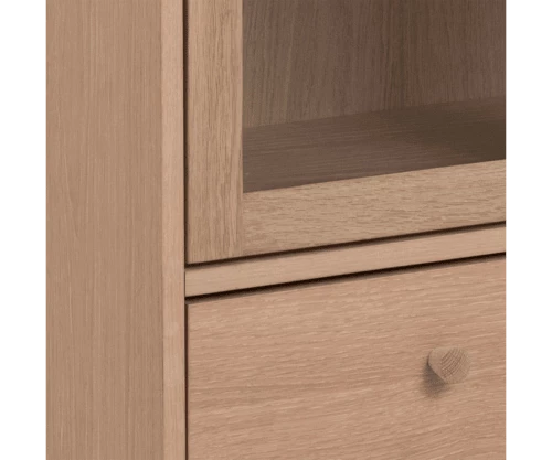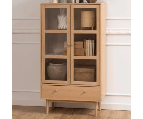 matière : Matériaux : Bois (chêne) + verre Pieds : Bois (chêne) Type de bois : Chêne Nombre de tiroirs : 1 Nombre de portes : 2 Nombre d’étagères : xxx