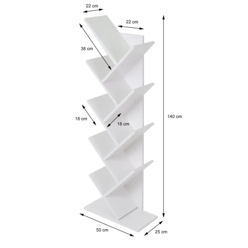 La bibliothèque moderne de ML-Design® comporte huit niveaux disposés en forme de branches. Mettez vos livres ou accessoires préférés à l’honneur. La couleur blanche simple s’adapte parfaitement à toutes les pièces et s’harmonise parfaitement avec votre décoration intérieure existante. Grâce à son matériau de haute qualité, l’étagère est extrêmement robuste et résistante aux rayures. La fabrication de haute qualité garantit une longue durée de vie. Grâce à sa forme de brindille, l’étagère est très peu encombrante et assure le bon ordre dans un petit espace.