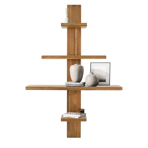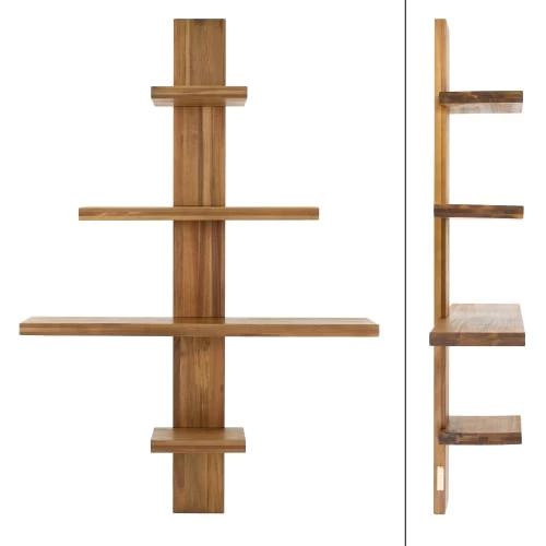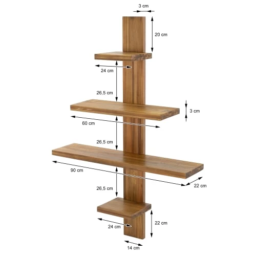 L’étagère murale pratique de ML-Design a une forme très moderne, les 4 niveaux offrent suffisamment d’espace pour mettre en valeur vos livres préférés ou vos éléments décoratifs. Le beau ton chaud du bois s’adapte parfaitement à toutes les pièces et complète les accents douillets et modernes. Le bois d’acacia traité, robuste et de haute qualité, assure une longue durée de vie à l’étagère murale.