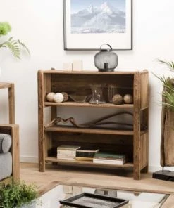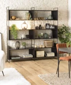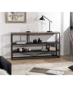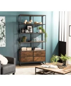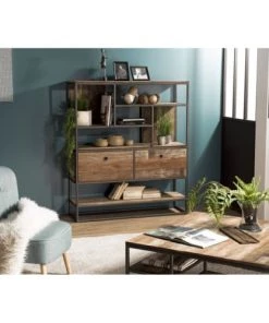 MACABANE Étagères Etagère 2 Tiroirs En Teck Recyclé Acacia Mahogany Métal Et Métal Noir