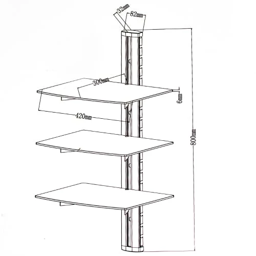 Tectake Étagères Etagère Murale 3 Tablettes Pour Lecteur DVD/ Blu Ray 80 X 42 X 33 Cm